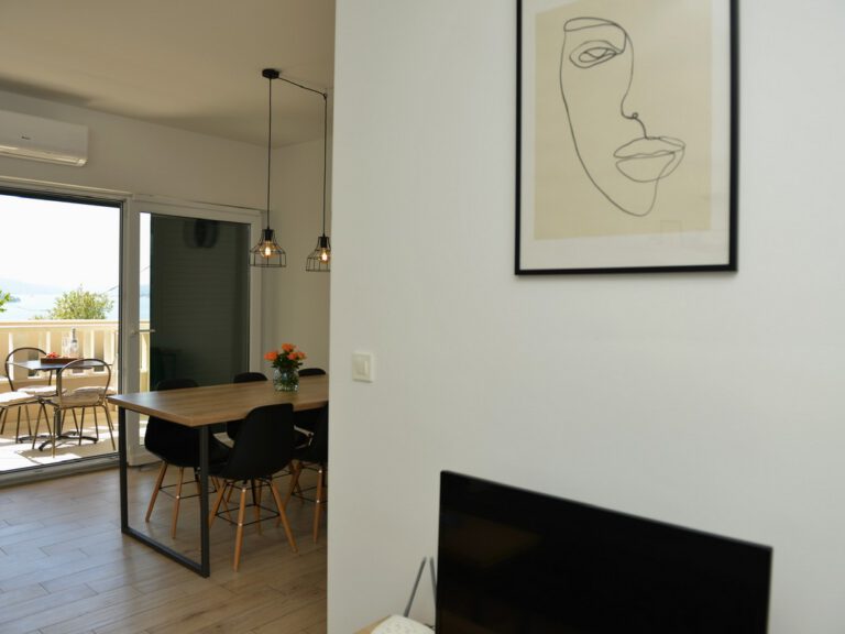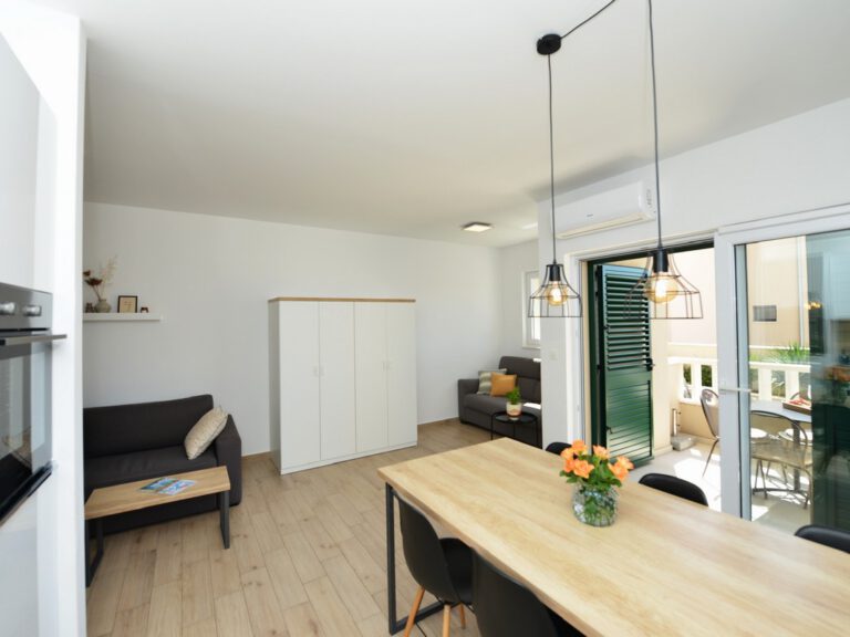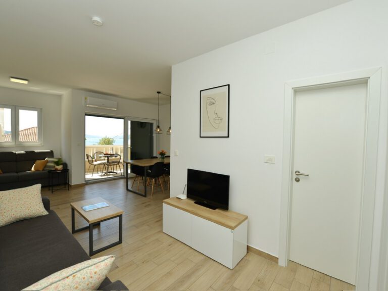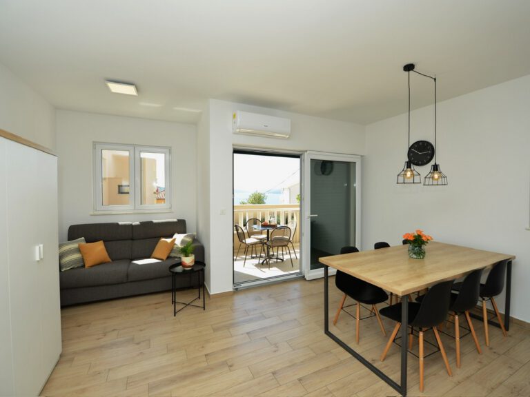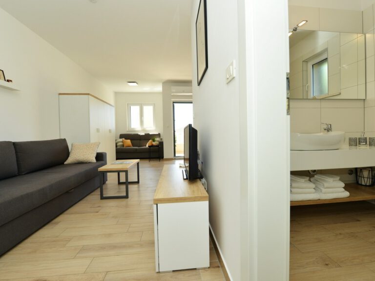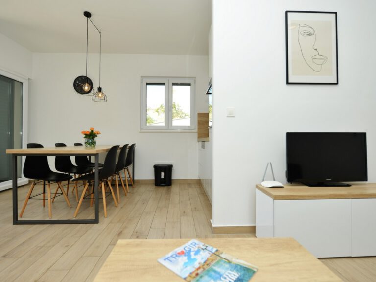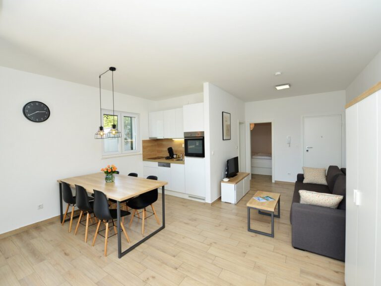 - Wohn-/Essbereich: Sofa ausziehbar, Schlafsofa mit ausziehbarer Matratze und Kleiderschrank, Sat- und Smart-TV, Erste-Hilfe-Koffer, Staubsauger, Esstisch mit Stühle