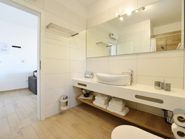 - Schlafzimmer: großes Doppelbett 180 x 200cm, Bettwäsche, Schreibtisch, Kleiderschrank, Bügeleisen/Bügelbrett, Safe, Wäscheständer