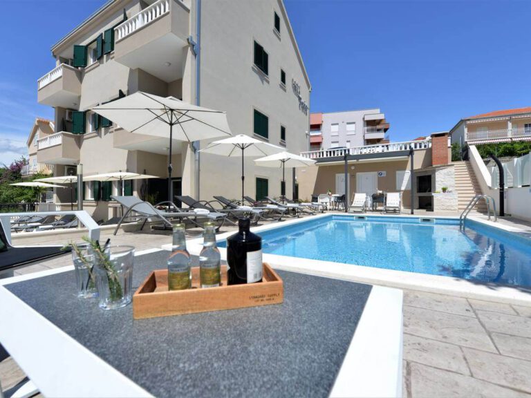 The nearby UNESCO town of Trogir is 2,5 km away. The second largest city in Croatia, Split, is 29 km away.